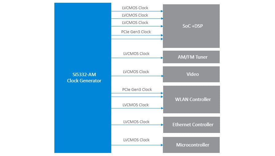 Automotive infotainment system designs have traditionally used quartz crystal and oscillator timing components to satisfy timing requirements. Supporting higher fidelity audio, video, and added functionality requires a greater number of reference clocks, at a mix of varying frequencies, with both differential as well as LVCMOS formats, all with tighter jitter performance requirements.