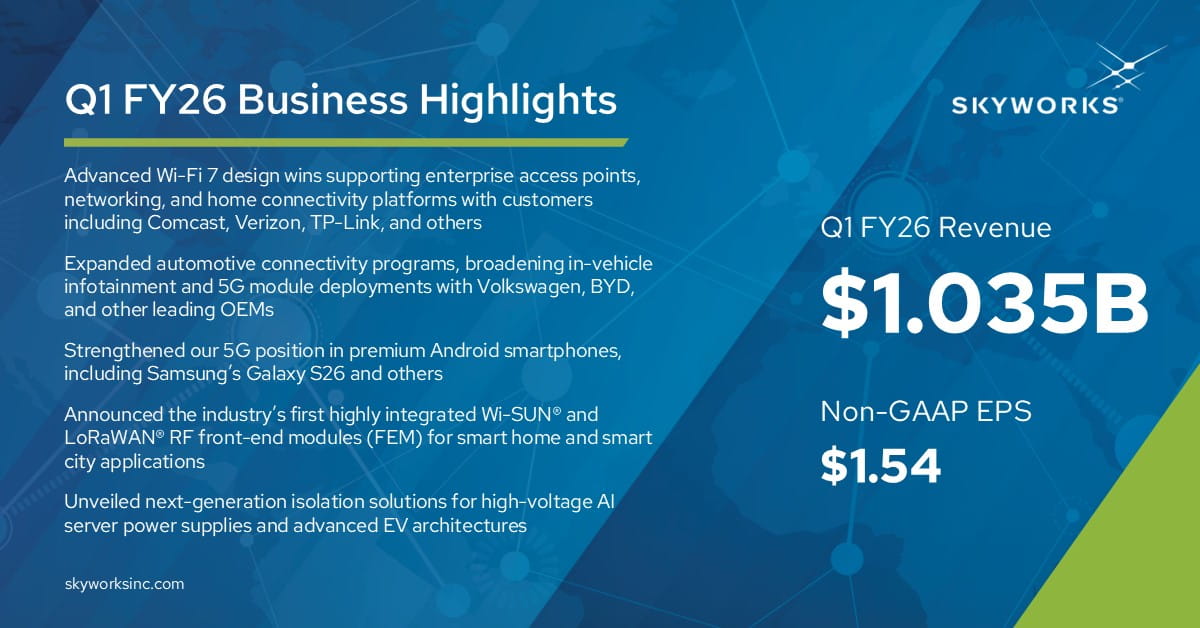 Skyworks Delivers Strong Q1 FY26 Performance Driven by Mobile and Broad Markets