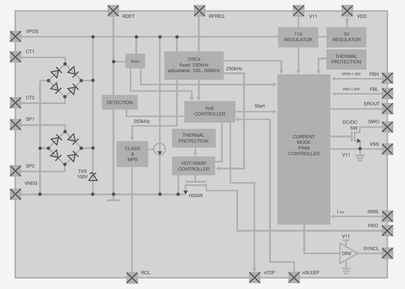 Si3406 devices feature the flagship PoE+ PD offering. Si34061 adds support for very high power applications and maximum efficiency, and Si34062 adds support for very low standby power applications, including sleep and wake features.