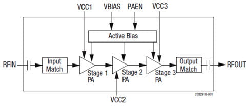 The SKY66299-11 is a high efficiency fully input/output matched power amplifier (PA) with high gain and linearity. The compact 5 x 5 mm PA is designed for FDD and TDD 2G/3G/4G LTE small cell base stations operating from 1900 to 2000 MHz. The active biasing circuitry is integrated to compensate PA performance over temperature, voltage, and process variation. The SKY66299-11 is part of a high-efficiency, pin-to-pin compatible PA family supporting all 3GPP bands.
