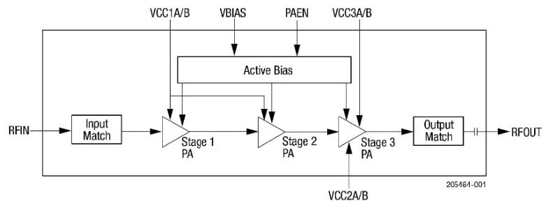 The SKY66395-11 is a +30 dBM high-efficiency power amplifier (PA) with high gain and linearity. The SKY66395-11 only requires a single 5 V supply and has integrate active biasing circuit to compensate PA performance over temperature, voltage and process variation.