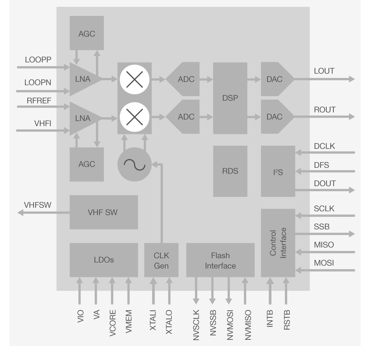 Si468x single-chip digital receivers are the industry's first fully integrated, 100% CMOS digital radio broadcast receivers ICs built for consumer electronic products. Si468x devices provide revolutionary advances in size, power consumption, and performance, enabling high-volume, cost-sensitive multimedia products incorporating digital broadcast features. The all-in-one, ultra-low power, multi-band digital broadcast receivers support global analog and digital radio standards, including AM, SW, LW, FM, FM RDS, HD, DAB, DAB+. Si468x digital radio receivers are the most cost-effective single-chip digital radio receivers available on the market today, supports worldwide radio reception and are certified for both Digital Radio Tick Mark and AM/FM HD Radio.