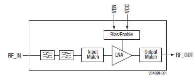 An additional filter is incorporated in the SKY65725-11 to improve