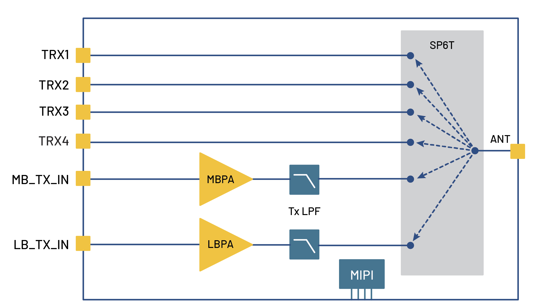 harmonic filter, antenna switch, and MIPI RFFE controller.