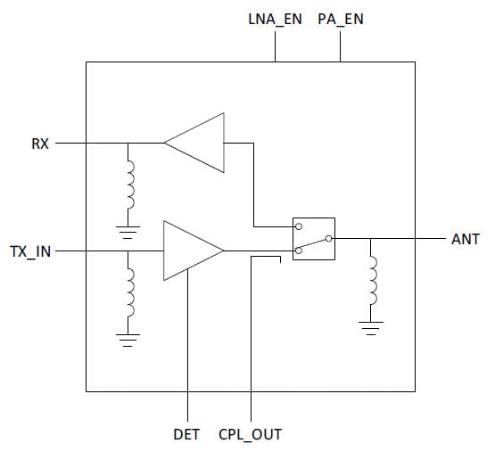 switch, a 2.4 GHz low-noise amplifier (LNA) with bypass, and