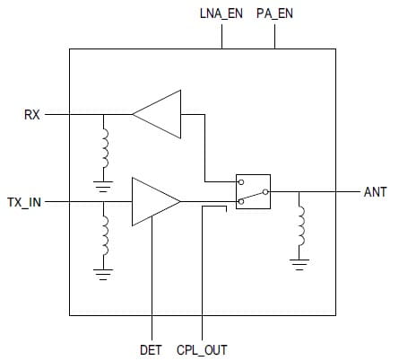 (LNA) with bypass, and a 2.4 GHz power amplifier (PA)
