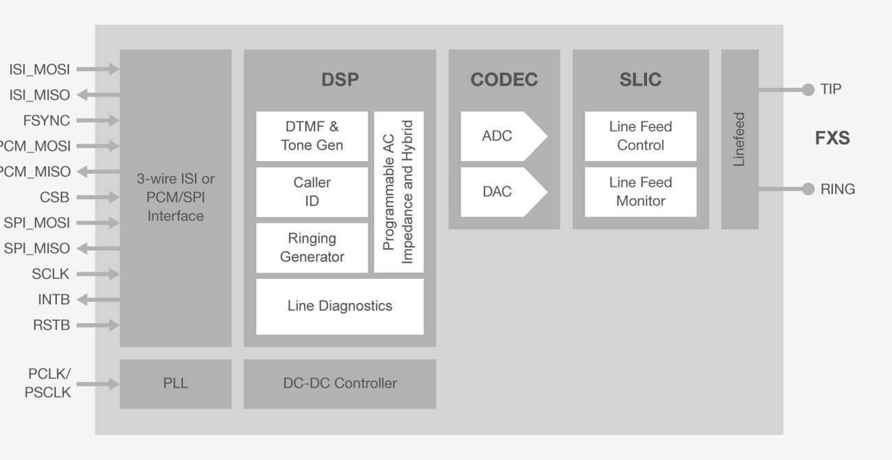 The new flagship Si3218x single-channel ProSLIC subscriber line interface circuit (SLIC) devices deliver the lowest power consumption, highest level of programmability, and lowest cost bill of materials in the industry. Unmatched power efficiency is achieved using patented on-chip intelligent dc-dc controller, patented low-power ringing (LPR), and a very low-power on-hook mode.