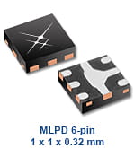 The switch is manufactured in a compact, 1 × 1 × 0.32 mm,