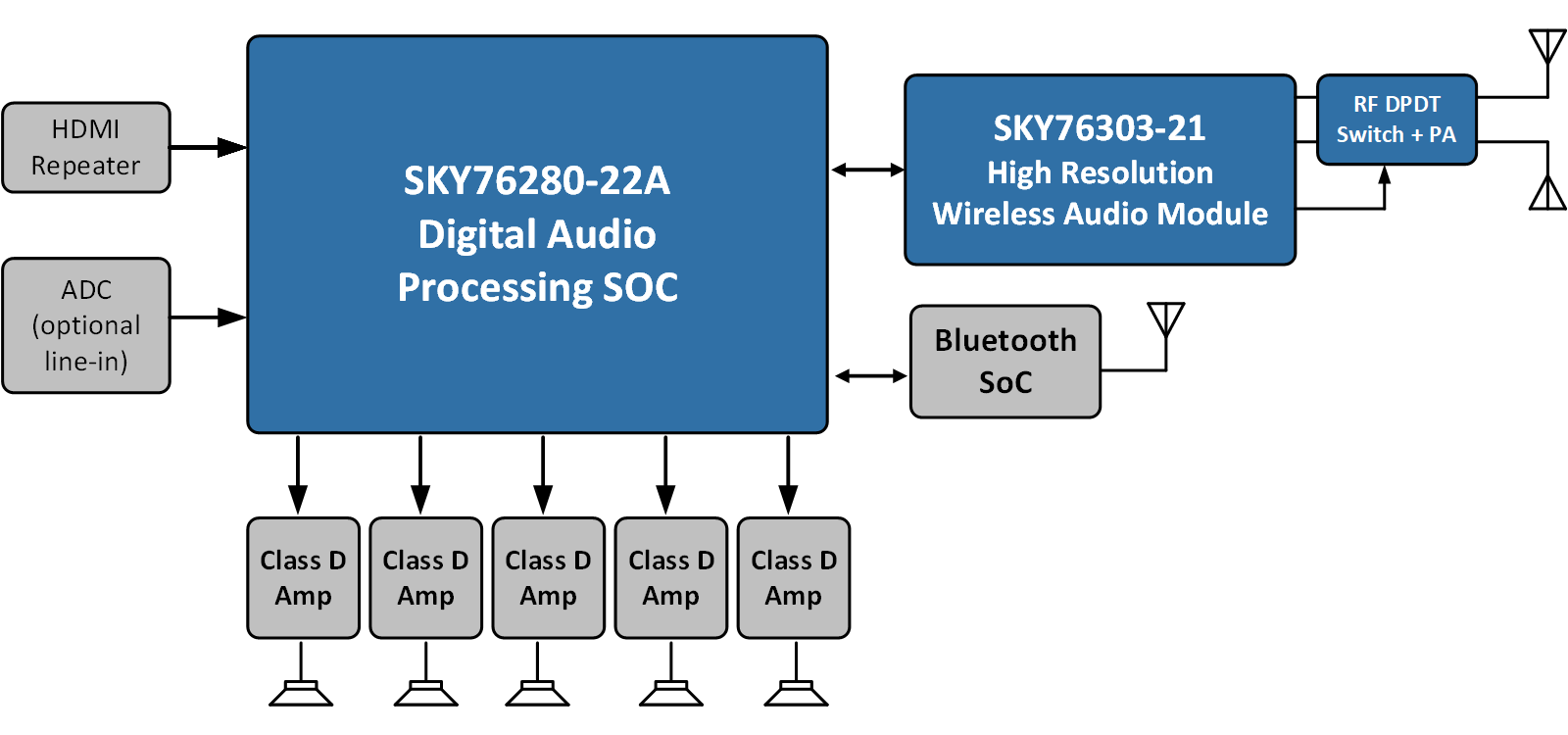Ultra-low power levels with world class performance distinguish the Skyworks SKY76206-21 Class D digital headphone amplifier. Using an innovative architecture, the IC delivers a complete solution with a digital interface permitting two headphones to be managed with a single control and audio stream. PDM inputs and no external filtering requirement make this device well suited for small form factor earbuds or hearing aids / assistants.